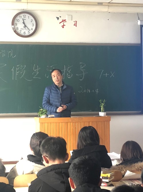 1月4日,伴随着最后一门高数课考试结束,皇冠正规娱乐平台18级学生的寒假生活正式开启,为了让同学们过一个充实的有意义的寒假,皇冠正规娱乐平台推出“7+X”寒假生活超市。1月4日上午,学院在2号公教楼604教室召开主题班会对寒假进行了部署。