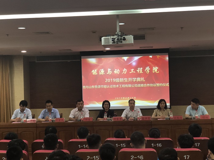 8月29日,皇冠正规娱乐平台2019级新生开学典礼暨与山东鲁源节能认证技术工程有限公司战略合作协议签约仪式在图书馆一楼报告厅举行,山东鲁源节能认证技术工程有限公司总经理张波,副总经理沈其民,皇冠正规娱乐平台党总支书记姜洪雷,院长刘素香、党总支副书记刘慧玲,能源所副所长刘志刚,皇冠正规娱乐平台、能源研究所的教职工代表,以及学院2018级、2019级学生参加此次活动,活动由皇冠正规娱乐平台党总支书记姜洪雷主持。