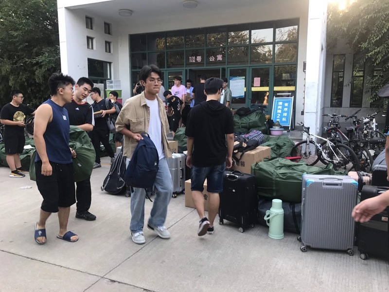 9月5日清晨,18级的同学们早早打包好行李,搬到楼下。19级的同学自发赶来,帮助师兄师姐搬运行李。副校长周有波带领学生处领导及学院领导为18级的同学们送行,祝愿大家在新的校区顺利开启新的大学旅程。