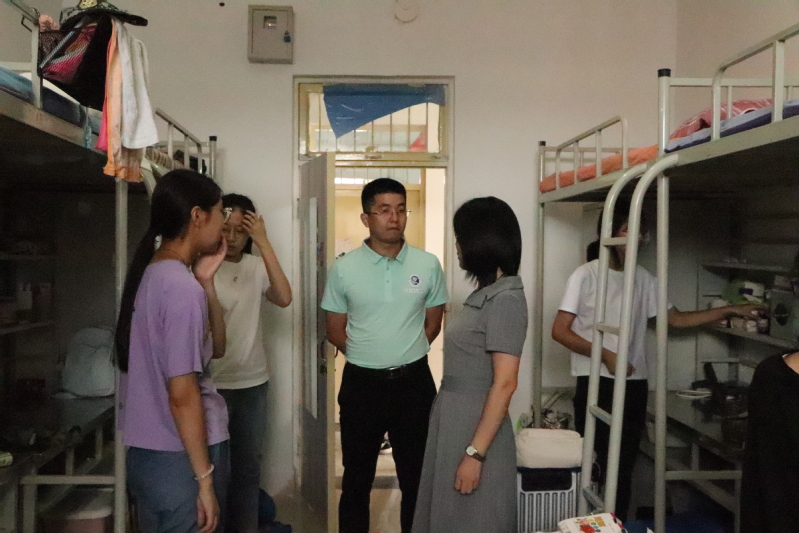 在走访过程中,刘慧玲亲切地询问了同学们都来自哪里,详细询问了新生在住宿、饮食、军训、环境适应等方面的问题,耐心回答了同学们提出的问题。同时还督促同学们认真打理宿舍以及提高安全意识,不要轻易相信来宿舍推销的人员,以免上当受骗。并鼓励同学们尽早适应学校的环境,养成良好的生活学习习惯,锻炼好身体,认真学习,珍惜大学时光,努力成长成才。