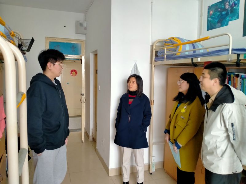 为贯彻落实校(院)防疫要求,切实做好学生返校后的疫情防控工作,进一步了解学生返校后的思想动态和生活需求。3月17日,皇冠正规娱乐平台党委副书记刘慧玲带领院(所)全体学工人员分别走访了长清校区、彩石校区学生宿舍。