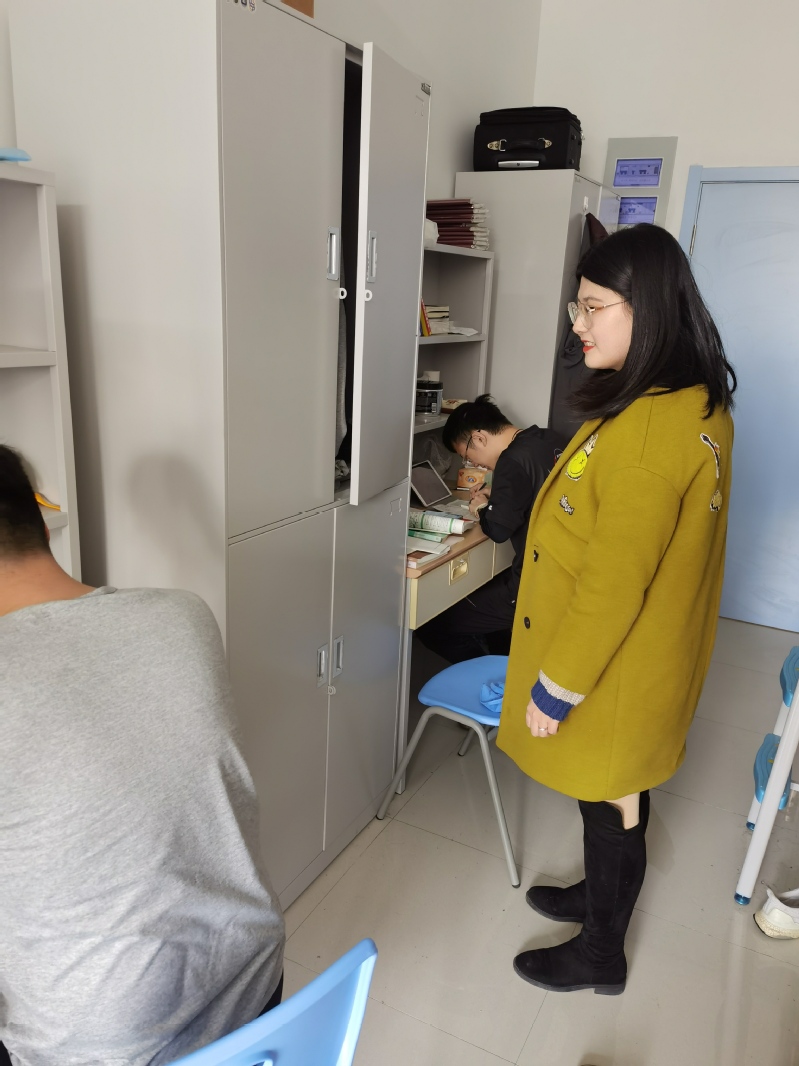 走访过程中,学生配合老师完成了违禁物品的排查工作、检查宿舍的卫生情况并一一进行点评。随后,老师们向学生询问了开学后的感受,提醒学生及时调整状态,以饱满的热情投入到学习中去。刘慧玲强调,同学们要时刻注意自身的身体状况,出现发烧发热的情况及时就医。同时,她列举出一系列健康安全问题,尤其是宿舍用电安全、外出交通安全、人身财物安全等,叮嘱学生有问题和困难要及时向辅导员反馈并尽快解决。