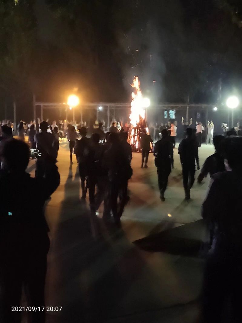 晚上9点,真正的挑战开始了,从常青营地步行6.5公里返校。同学们列队前行,夜幕深沉,灯光昏暗,同学们都打开了手机手电筒,照亮前行的路,遇到一些小障碍,大家互相提醒。过小路口时,有人拦住侧向驶来的车辆,让大部队顺利通过,一个多小时后,全体人员顺利返回学校。