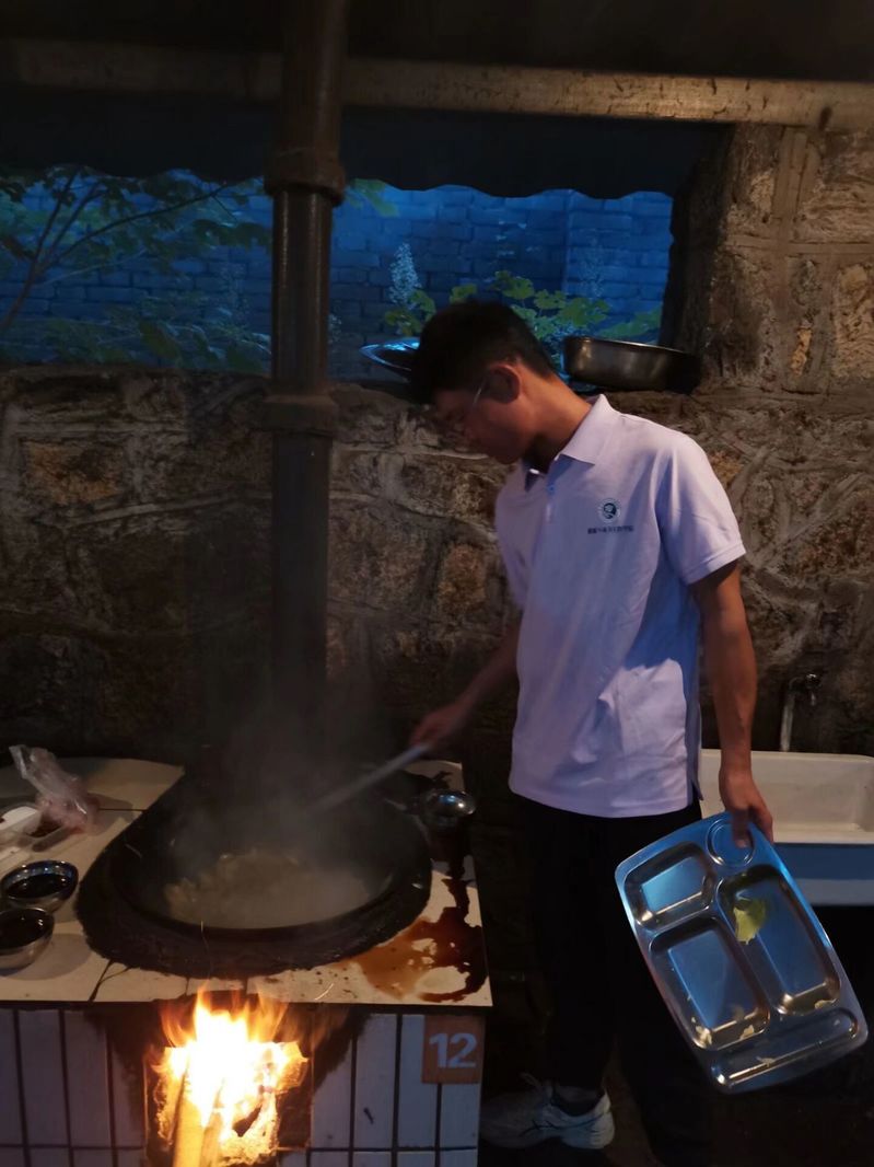 在野炊现场,虽然同学们在家很少做饭,但大家不畏困难,科学分工,通力协作,有一定烹饪经验的对着食材,上网查询烹饪方法。没有烹饪经验的就去洗菜,捡柴,烧火,一切都井然有序,热火朝天。在红彤彤的大灶台上,一道道菜品出锅,有的色香味俱佳,有的不那么好看,有的不那么好吃,但品尝着自己的劳动成果,田楳同学说,“自己劳动的结果是最香的。”