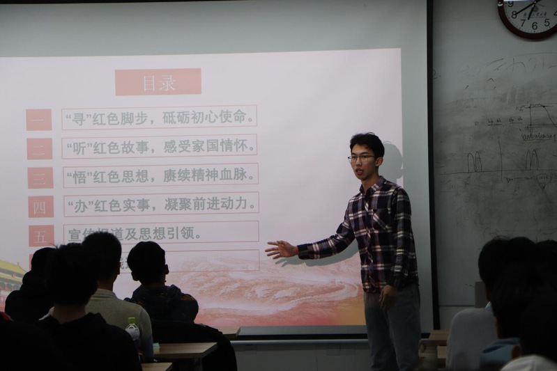 宣讲伊始,祝庆耀向同学们讲述了“信仰寻根之旅”社会实践活动所追崇的理念:追寻红色脚步,砥砺初心使命;聆听红色故事,感悟家国情怀;贯彻红色思想,延续精神血脉;开办红色实事,凝聚前进动力。同学们都被深深地震撼和感动着,那些珍贵画面、那些或青春或苍老却无比坚毅的先烈身影和面庞,仿佛在无声地召唤着。最后,祝庆耀重申爱国主义精神的重要性,鼓励同学们多多了解革命前辈的事迹,切实做到“牢记历史,展望未来”。
