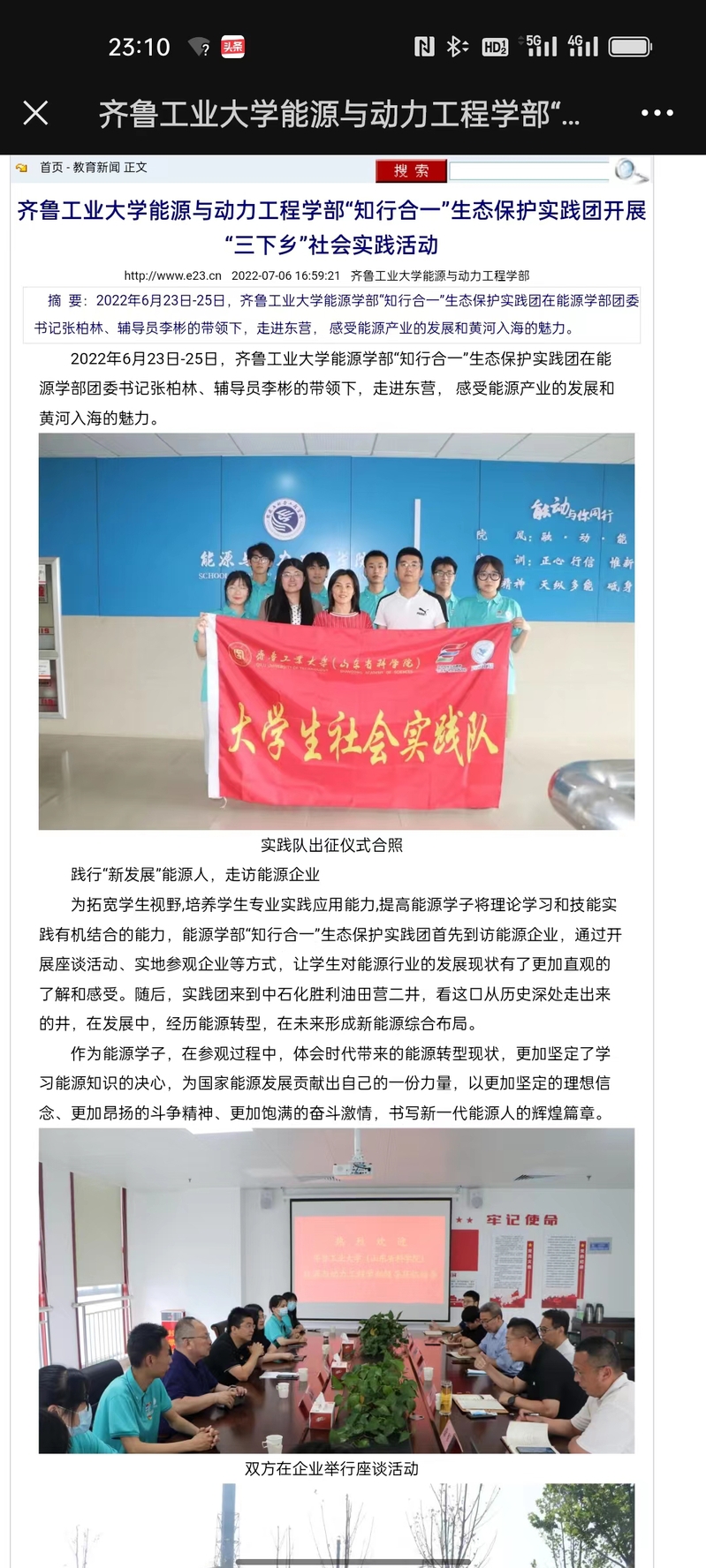 【济南日报】齐鲁工业大学皇冠正规娱乐平台“知行合一”生态保护实践团开展“三下乡”社会实践活动