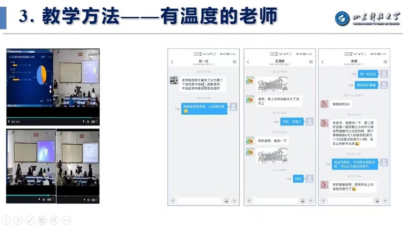 此次培训邀请了全国青教赛获奖者、山东科技大学教学名师,课程思政教学专家李志敏教授。李教授以“专业为本,立心铸魂”为题作了报告,她从工程伦理、家国情怀、工匠精神及科学研究方法等多个理工类思政育人目标入手,分别深入剖析了各类思政元素的挖掘和融于专业知识点的方法;分享了如何将课程思政建设贯穿到教学目标、教学内容、教学策略、评价机制等环节,实现全员、全过程、全方位育人等方面的实践与探索。李教授表示,提升课程思政建设效果,需要教师秉持对教育的热爱,持续关注学生成长,只有做到这些,对学生的培养才能收到水到渠成的效果。
