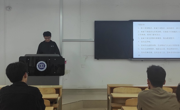 首先,生活部成员张硕从宿舍评级方面对宿舍内务整理进行了详细解说,给后续宿舍卫生整理提供了标杆准则。随后,张柏林以三所高校宿舍失火的真实案例为切入点,强调人走断电、禁止明火等宿舍消防安全的重要性,同时就近期宿舍卫生问题为切入口,对宿舍卫生安全管理等问题进行了大致讲解,强调了宿舍卫生的重要性,要求同学们注意宿舍卫生整理,最后,强调学生应当提高安全意识和财产管理意识,增强自我防范保护意识。