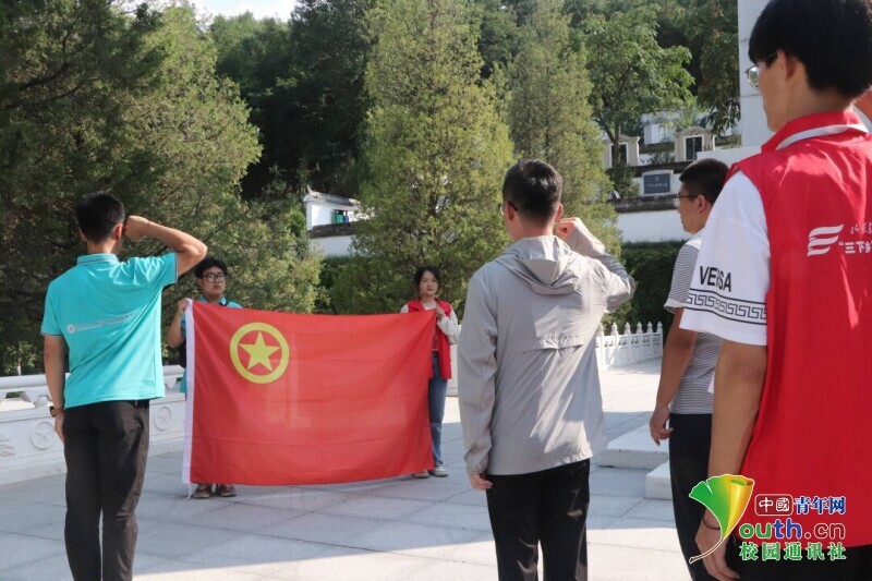 图为实践团在革命烈士陵园石碑前宣誓 中国青年网通讯员 邢祥远 摄