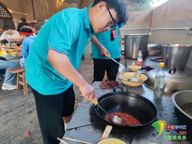 图为实践团成员自己动手制作晚饭 中国青年网通讯员 邢祥远 摄