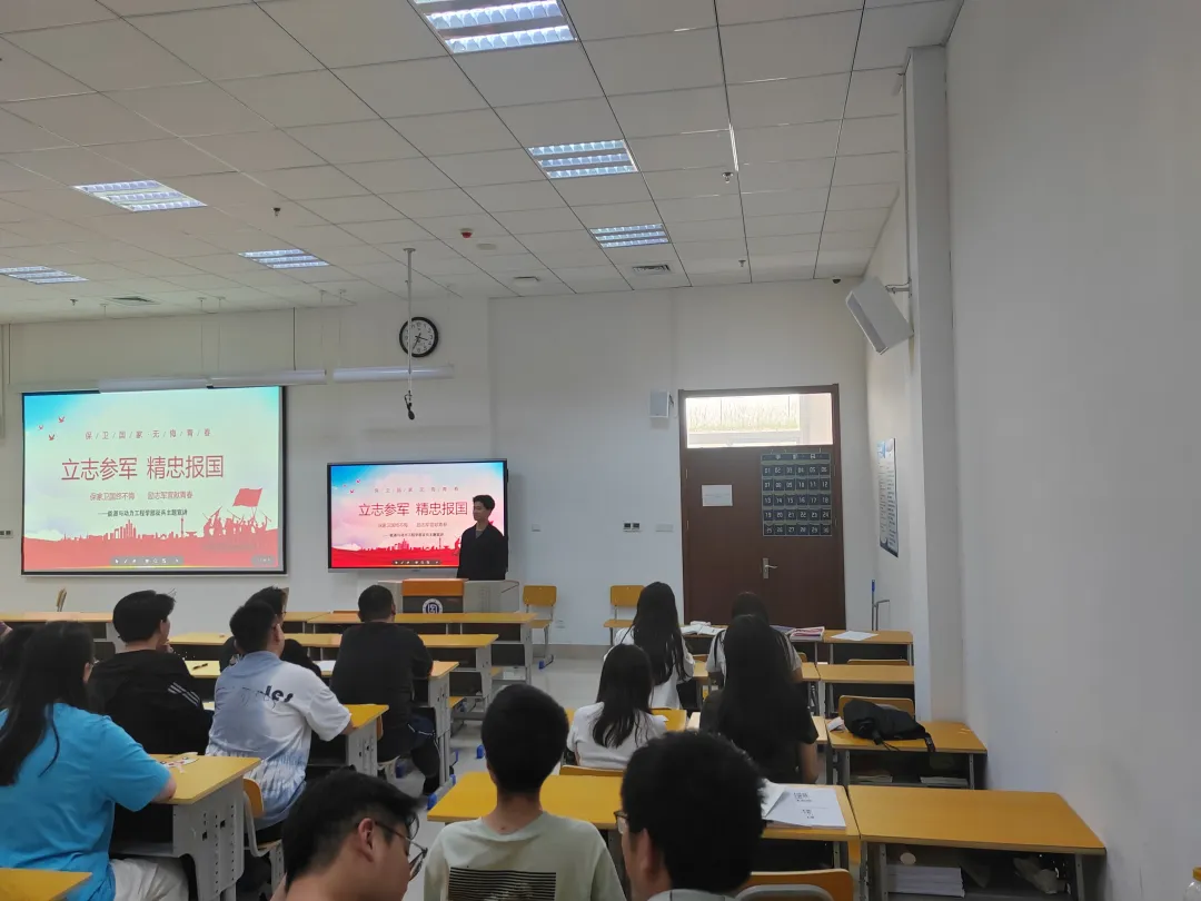 为鼓励毕业生积极参军入伍,近日,皇冠正规娱乐平台于彩石校区西配楼113教室举办了以“立志参军 精忠报国”为主题的征兵宣讲。此次宣讲活动由学部退役大学生士兵甄广轩主讲,2024届毕业生参加了活动。