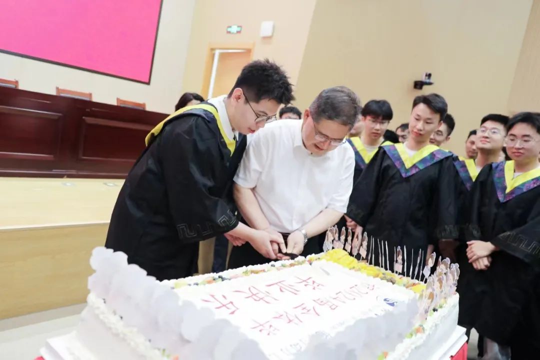 见面会后,吴衍涛与毕业生们切毕业蛋糕,共同分享这甜蜜而难忘的毕业时刻。