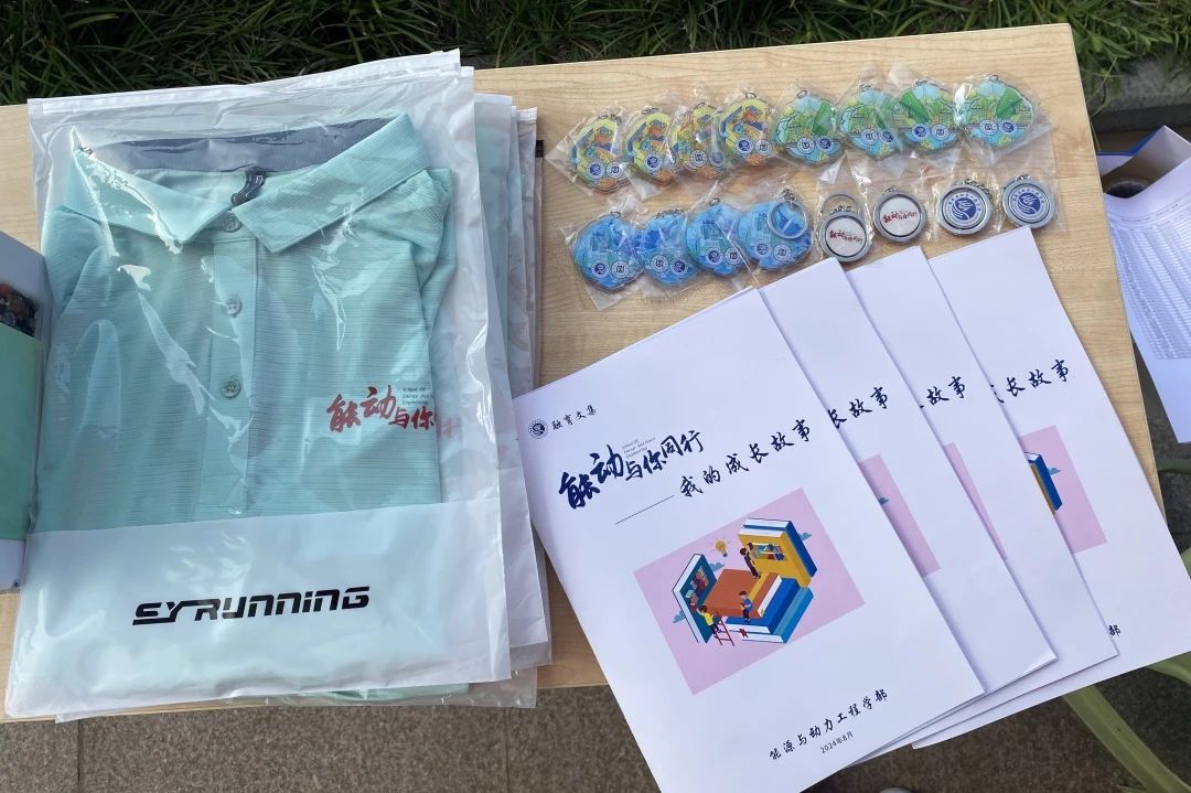 带有学部logo的文化衫,寓意“红黄蓝绿紫”,其中,红色是志愿者专属颜色,黄蓝绿紫则是四个不同年级的专属色,今年为新生准备的文化衫是绿色,五色既寓意“五色能源”,也寓意学部的“五彩团支部”建设。