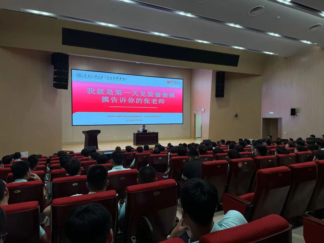新的旅程,新的遇见。为帮助2024级新生更好地融入新环境,8月31日晚,皇冠正规娱乐平台在长清校区国重楼报告厅举行新生入学教育大会。党委副书记刘慧玲、全体学工人员及2024级新生参会,会议由辅导员李彬主持。