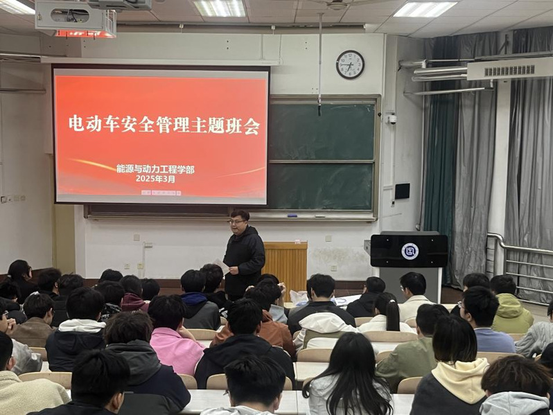 会议伊始,王国庆结合近期高校电动车安全事故典型案例,指出了电动车违规使用导致的四大安全隐患:一是占用消防通道延误应急响应,二是无序充电引发火灾风险,三是密集停放阻碍紧急疏散,四是超速骑行造成交通事故。随后,王国庆要求大家,已申领校内车牌的同学要严格遵守校(院)电动车管理规定,必须停放至指定区域,必须使用合规充电设备;严禁占用消防通道,严禁电动车电瓶进宿舍,严禁超速及载人骑行。