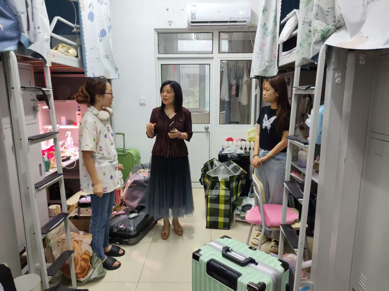 7月7日,党委副书记刘慧玲带领学工人员前往宿舍查看学生宿舍卫生打扫情况及行李打包整理情况,确保搬迁前各项准备工作落实到位。