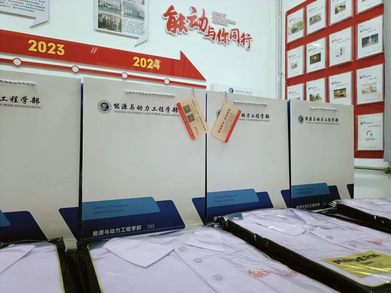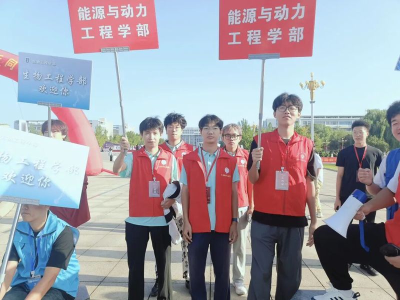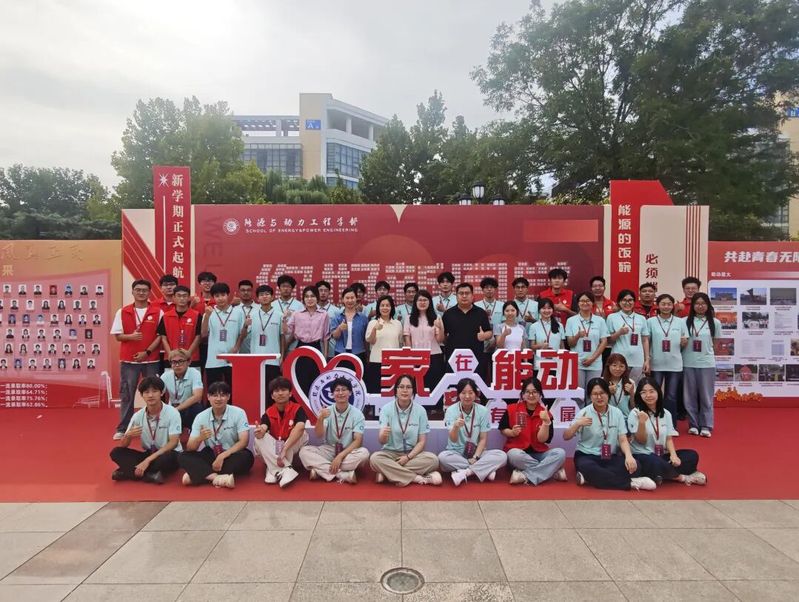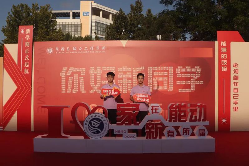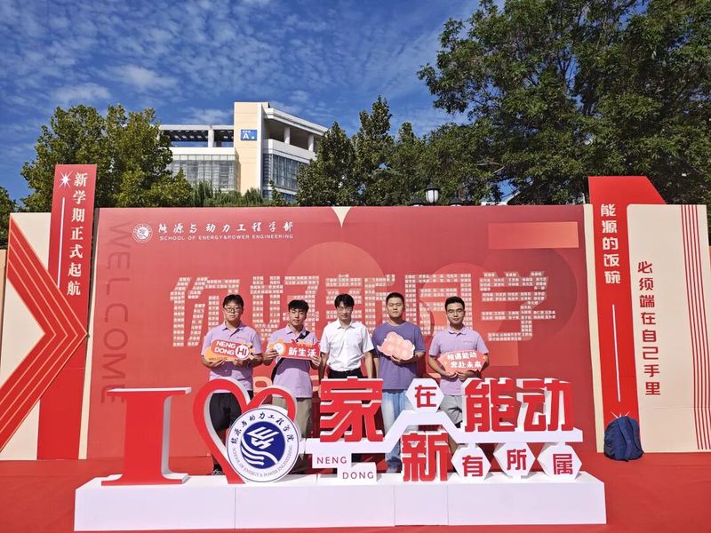 同样引人注目的还有带着学部logo的文化衫:红色是志愿者的“服务标识”,橙、蓝、绿、紫四色分别对应不同年级的学长学姐,而2025级新生的专属文化衫为紫色——这抹独特的“能源紫”,寓意智慧与创新,既呼应了学部“五色能源”的理念,也为“五彩团支部”建设注入新活力。许多新生特意穿上这件象征身份的文化衫,在迎新展板前拍照留念,定格成为能源人的自豪瞬间。