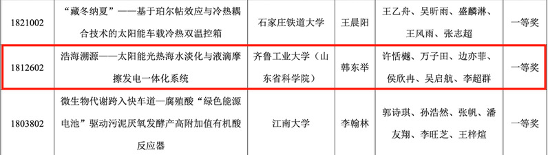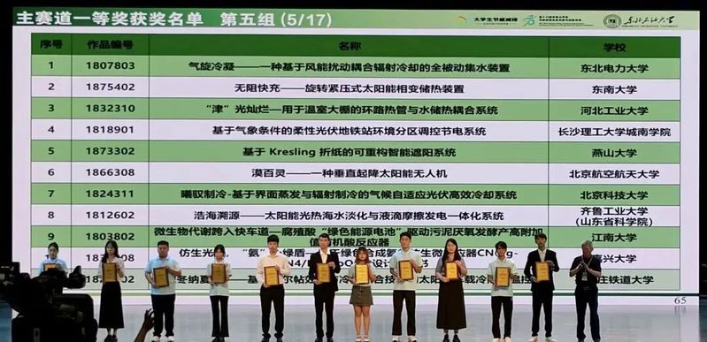 本届大赛以“绿色低碳,奔向未来”为主题,经决赛现场专家巡展、答辩展示等环节,皇冠正规娱乐平台参赛作品《浩海溯源-太阳能光热海水淡化与液滴摩擦发电一体化系统》获全国一等奖。
