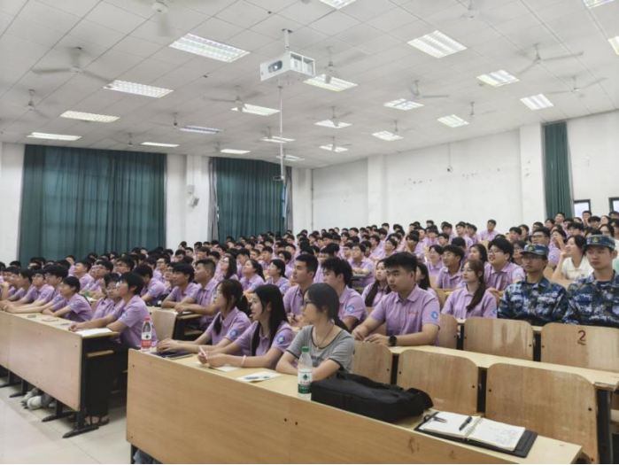 李彬以“‘能’遇见,便是‘源’”为主题,从三个方面与新生进行交流。一是初识相见增了解,首先她简要介绍了学部整体情况、学工队伍成员、团委工作职责,帮助同学们快速建立对学工办、团委的整体认知;然后介绍了军训教官宋旭、刘千铭及各班班助,强调要加强彼此的沟通交流,以保障后期军训顺利开展。二是崭新起点强引领。围绕“大学的意义”“如何度过大学时光”等话题,她与新生展开心灵对话,从思想成长、学业规划、生活适应和职业发展四个方向,引导大家思考自我定位,树立生涯意识,从容迎接新征程。三是安全教育需牢记。她结合高校真实案例,深入浅出地为学生讲解了反诈知识、财产安全、宿舍安全、交通安全等重要内容,叮嘱学生时刻保持警惕,筑牢安全防线。