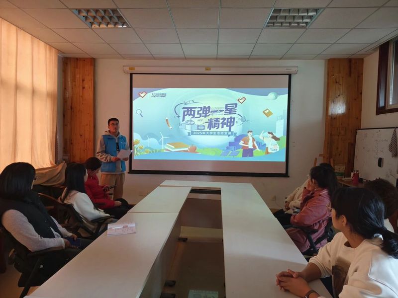 成员赵路鸣作为主讲人,用生动的史实和感人的事迹,讲述我国第一颗原子弹的研制历程与先辈们的报国情怀。他详细回顾新中国成立初期,面对西方国家核垄断与核讹诈,党中央毅然决策发展原子能事业的艰辛历程。从广西“开业之石”铀矿石的发现,到青海金银滩基地的艰苦建设,再到1964年罗布泊上空升起的蘑菇云,一个个关键节点串联起中华民族自强不息的奋斗史。他重点讲述王淦昌隐姓埋名17年投身核研、郭永怀用生命守护科研数据的感人事迹,展现“两弹一星”元勋以身许国、攻坚克难的崇高精神,让在场听众深切感受到“集中力量办大事”的制度优势与科研工作者的家国担当。